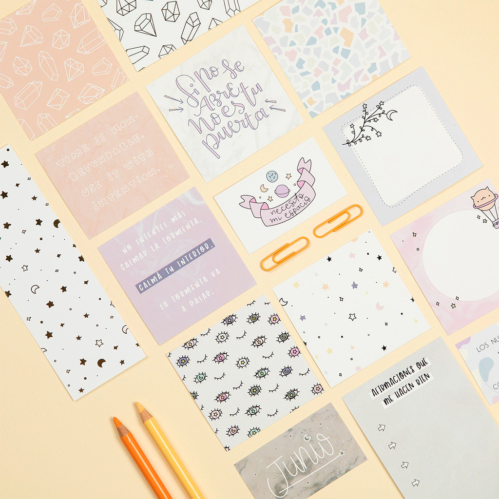 - 24 cartoncitos con diseño simplefaz en papel ilustración 300 gr de distintos tamaños.